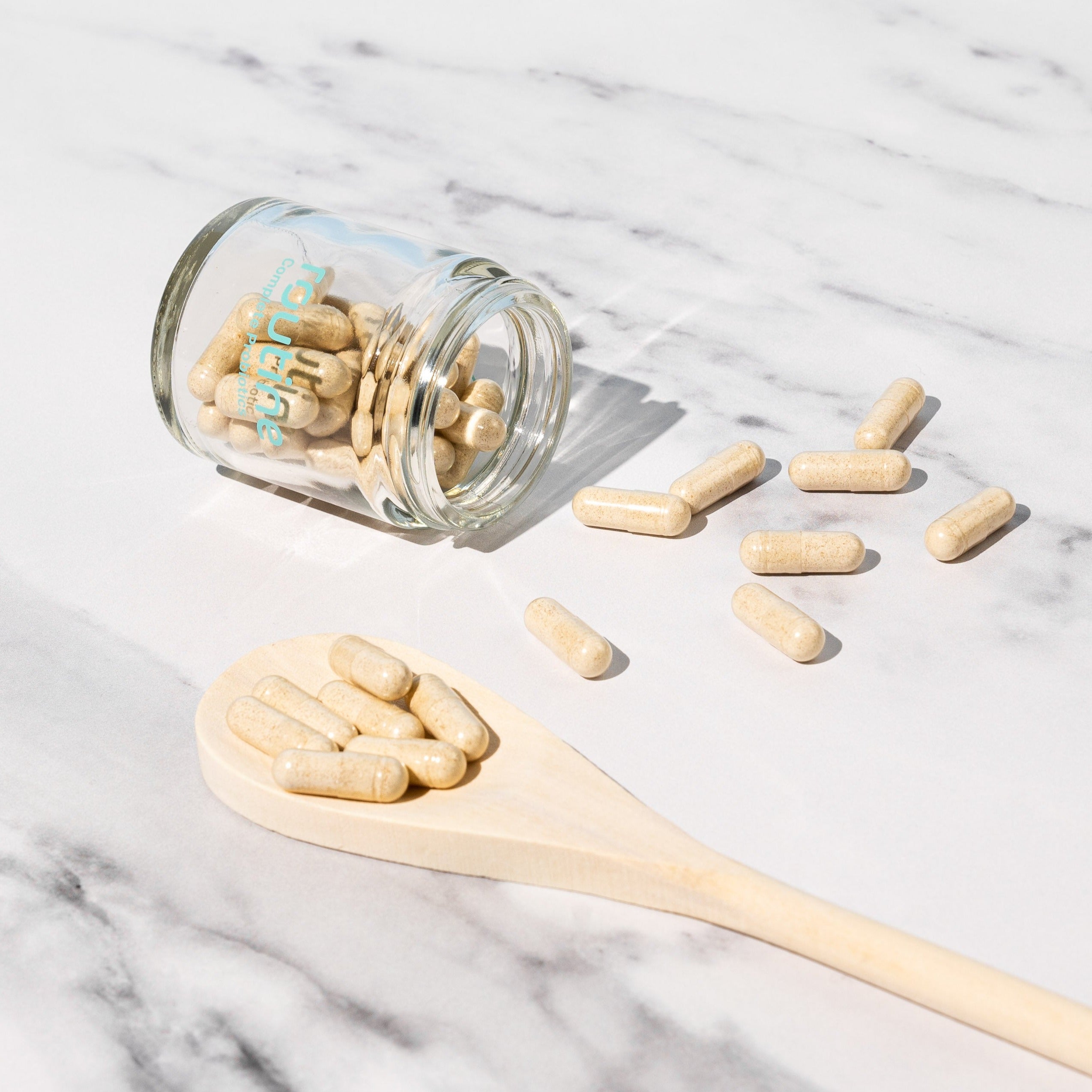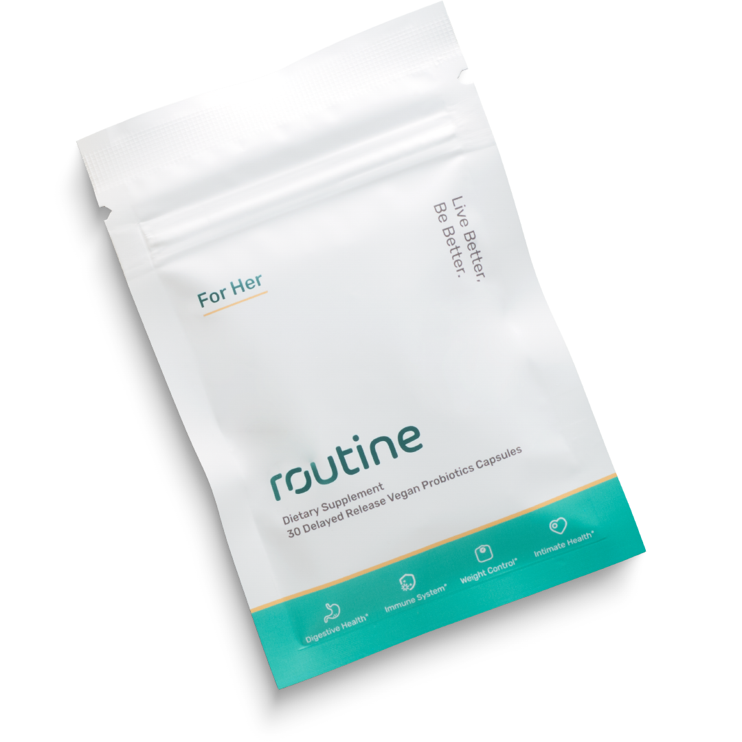 Routine is made of our unique blend containing a minimum of 24B CFU'S of 5 ultra-premium probiotics strains: